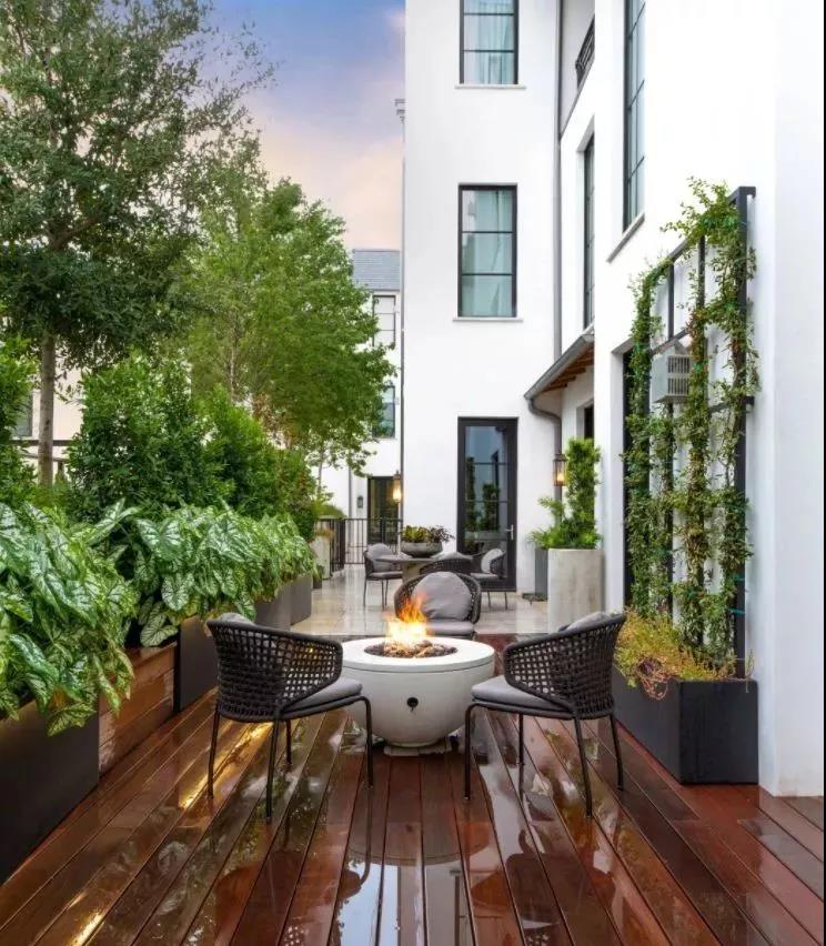 在中小型庭院中,可以培植自然式树丛、草坪或盆栽花卉,使生硬的道路、建筑轮廓变得柔和,打造自然惬意的庭院。